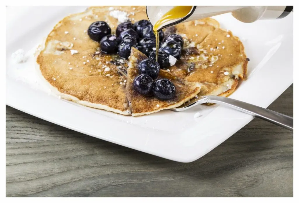 Die Pfannkuchen werden leicht und fluffig sein. Perfekt mit Ahornsirup und Blaubeeren.