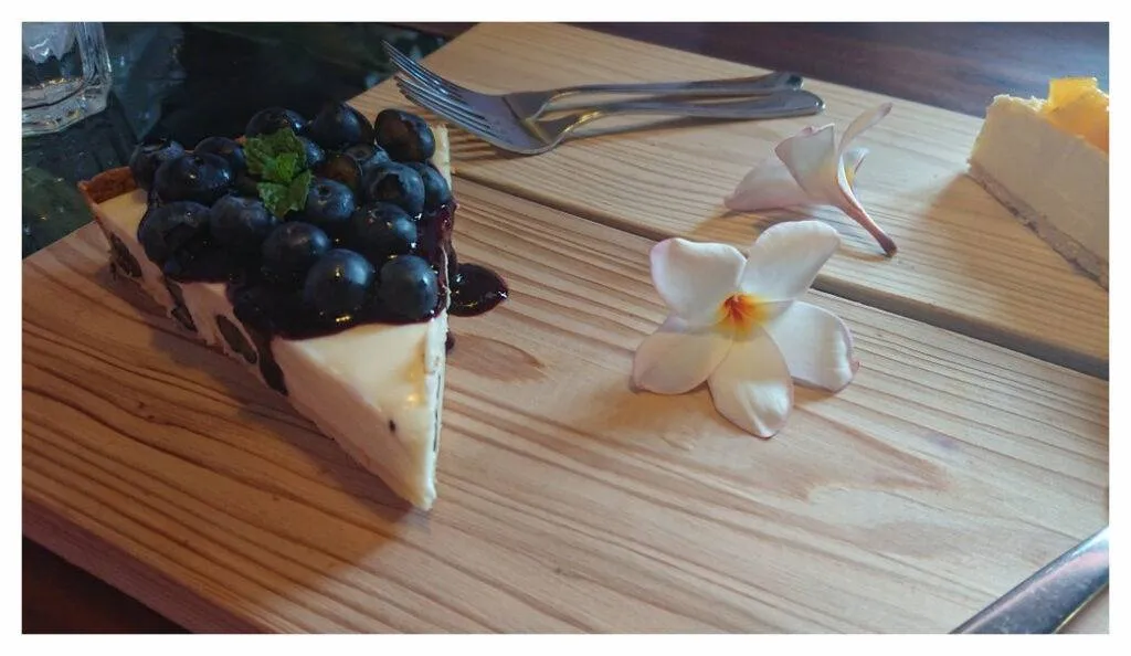 - Den Käsekuchen aus der Form nehmen, das Papier abziehen und in Quadrate schneiden. Mit der Blaubeersauce servieren.
