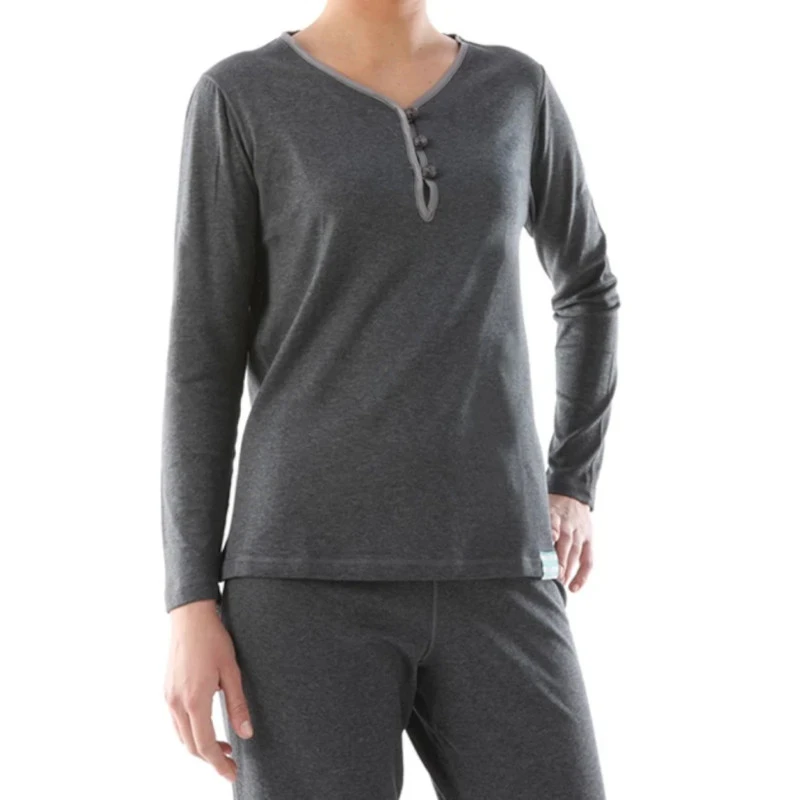 There are lots of options available which cater for most preferences. Some have covered hands to prevent unconscious scratching, some have flat seams, all are made of super-soft fabrics. Our own PJ tops include our signature silk mitts. We also love the Tepso PJ range (pictured) with its innovative fibre-first approach and striking Italian designs.